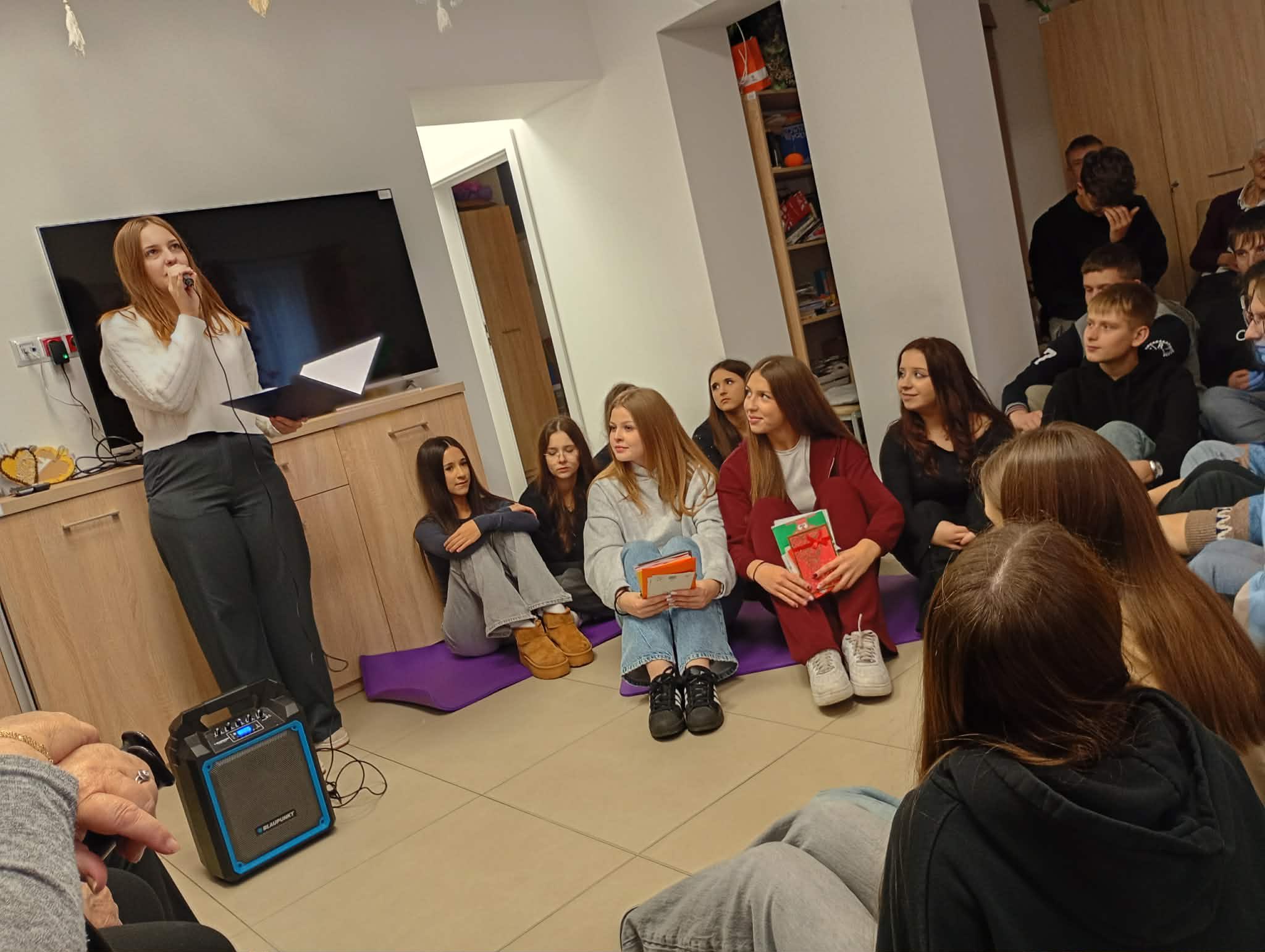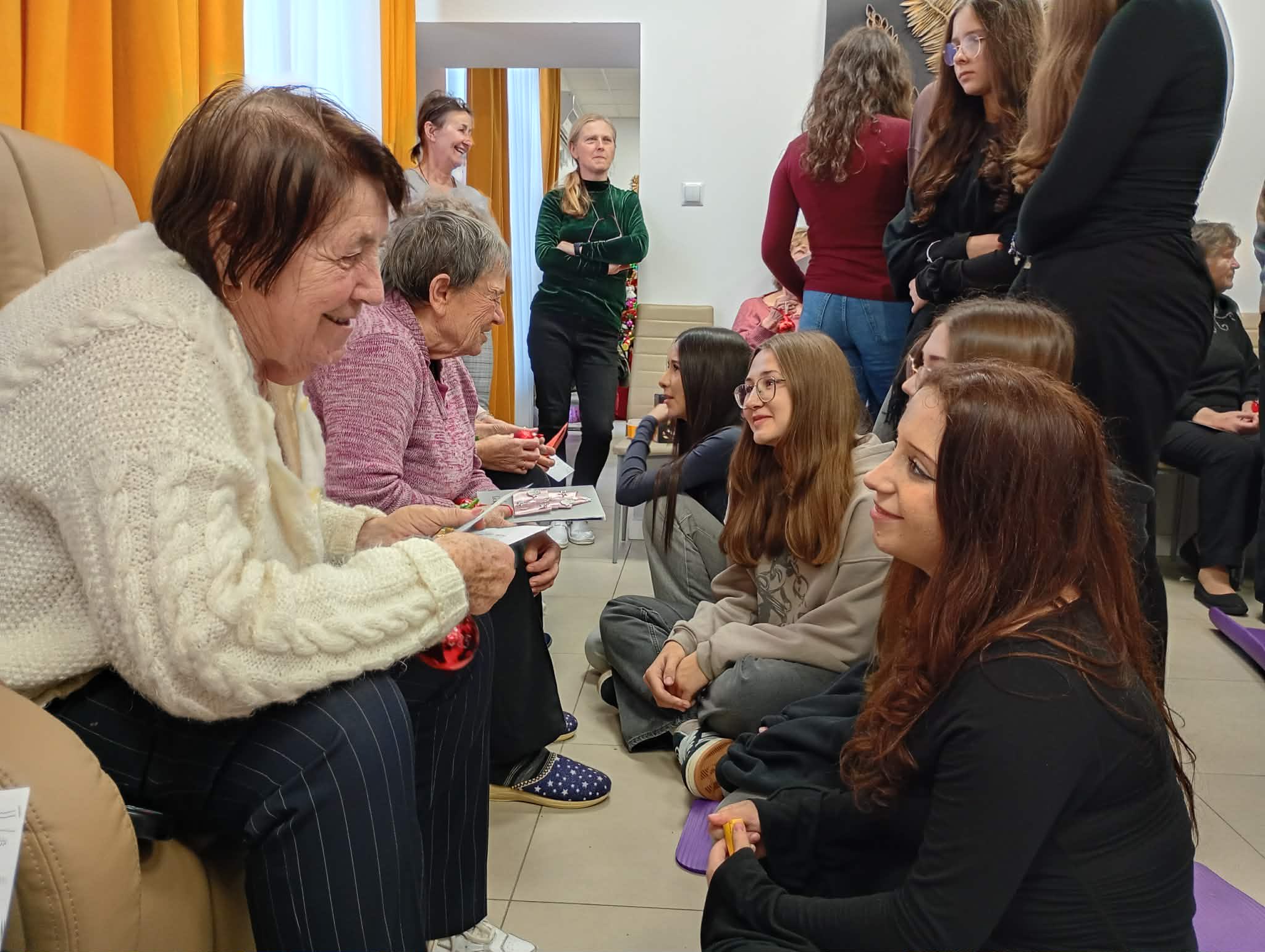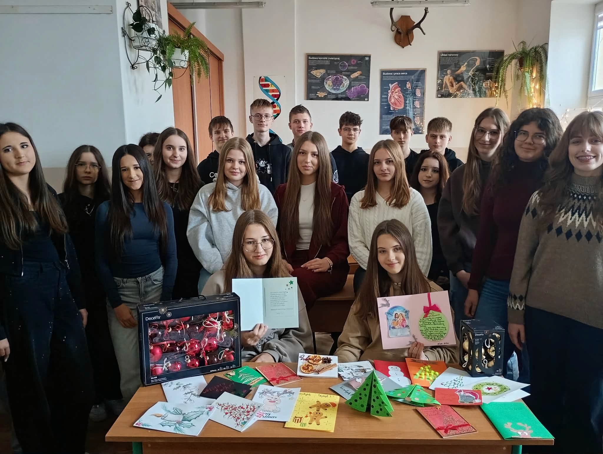„Dzielimy się dobrem” - tak uczniowie klasy 1 bm określili dzisiejsze spotkanie w Dziennym Domu Pobytu Senior + w Sandomierzu. Występ wokalny Marty Kuneckiej, wspólne śpiewanie kolęd, wręczenie samodzielnie wykonanych przez młodzież kart ze świątecznymi życzeniami oraz bombek choinkowych autoryzowanych imieniem, a przede wszystkim rozmowy i wspólnie spędzony czas wzruszył seniorów do łez.