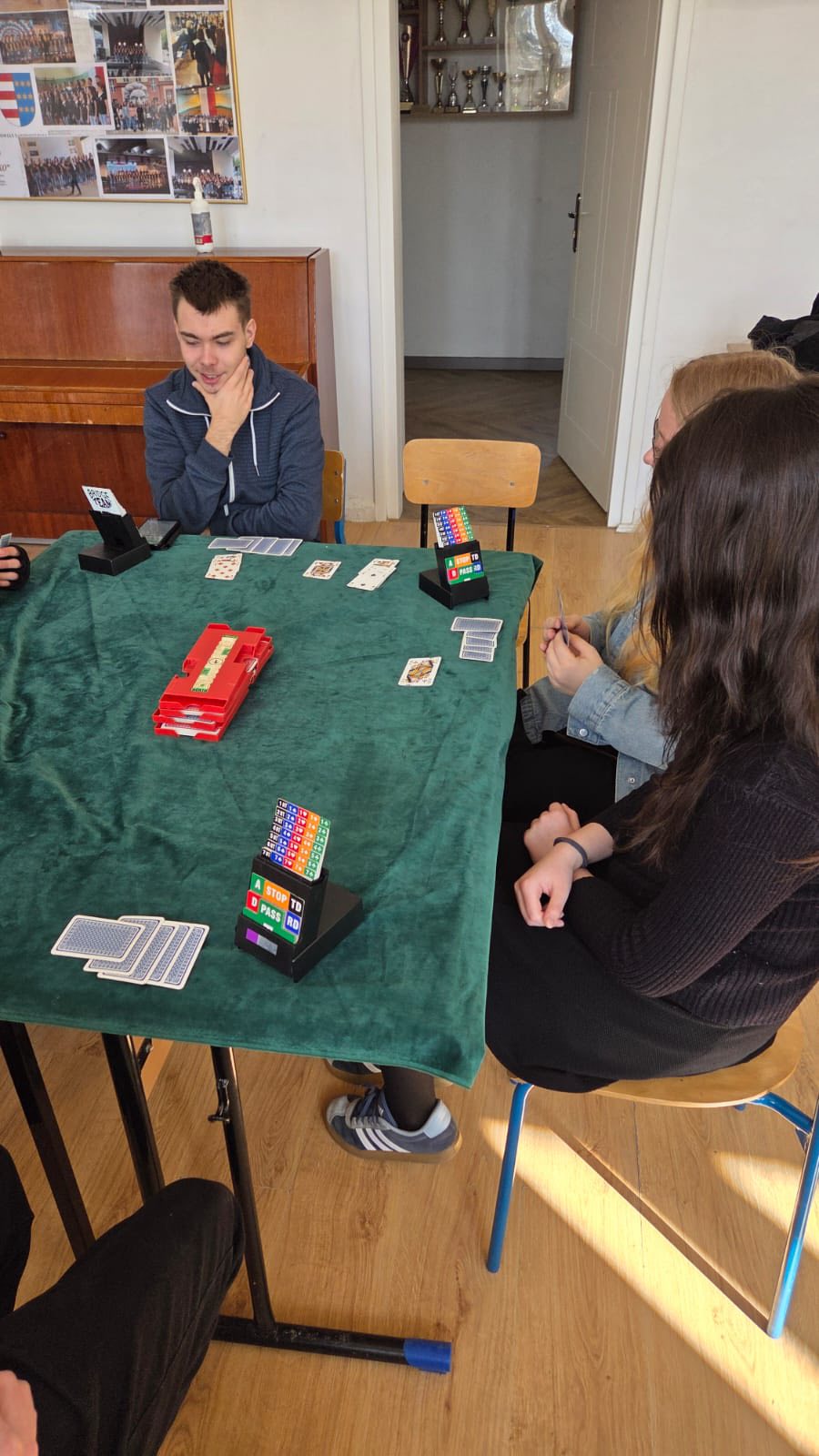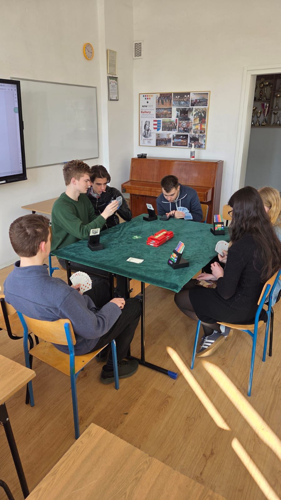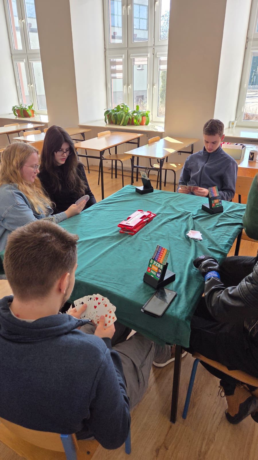 W wolnym czasie nasi uczniowie doskonalą grę w brydża. Tym razem tematem przewodnim były uzgodnienia licytacyjne w systemie „wspólny język”. Ostatnie spotkanie zaowocowało dołączeniem do zespołu dwóch nowych członków - Kuby z klasy IV b i Mikołaja z klasy III c. Witamy i życzymy samych szlemów. Cały czas czekamy na jakąś konkurencję, bo póki co jesteśmy jedyną szkołą w powiecie sandomierskim z kołem brydżowym a chętnie wzięlibyśmy udział w jakimś turnieju.