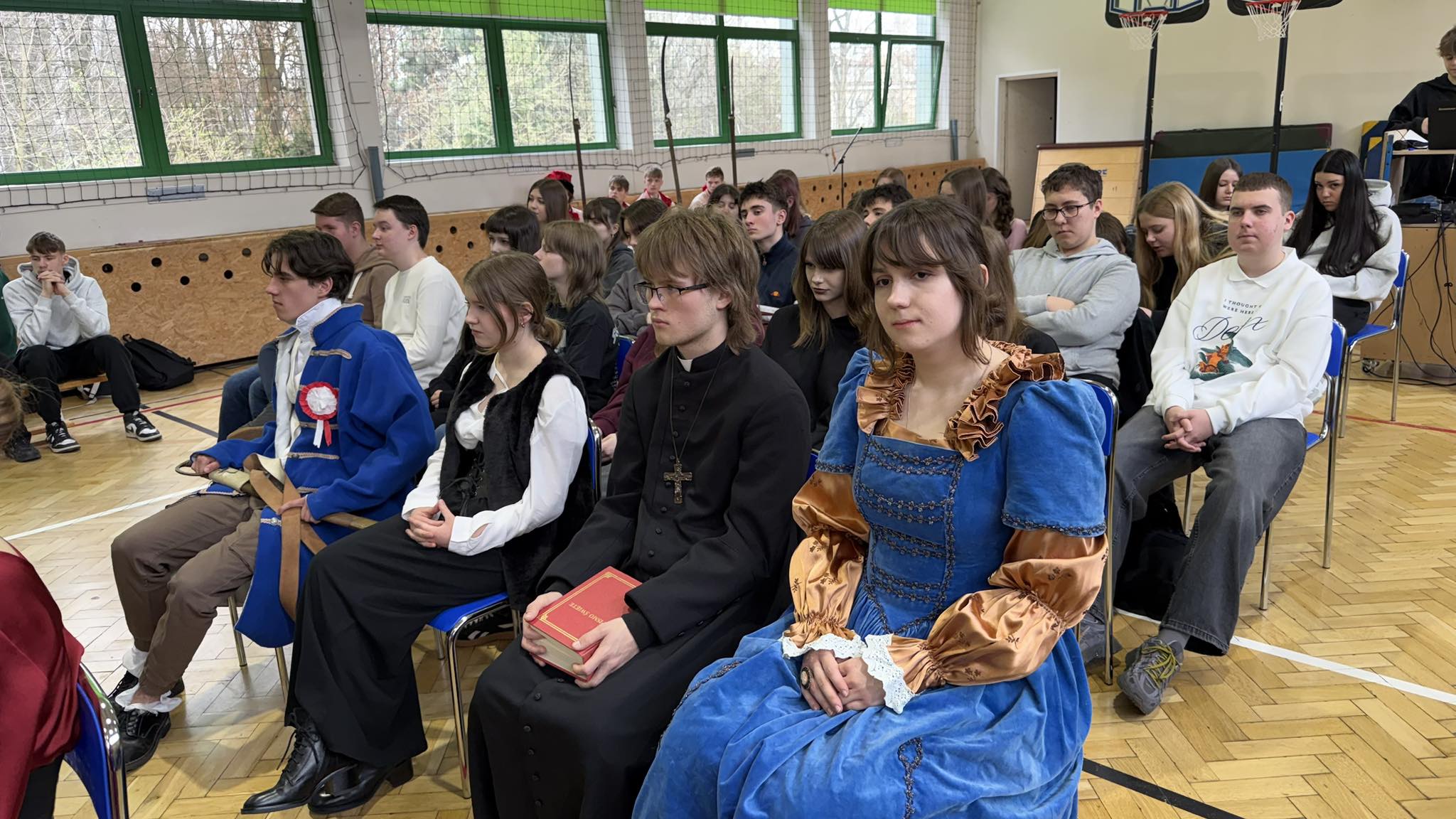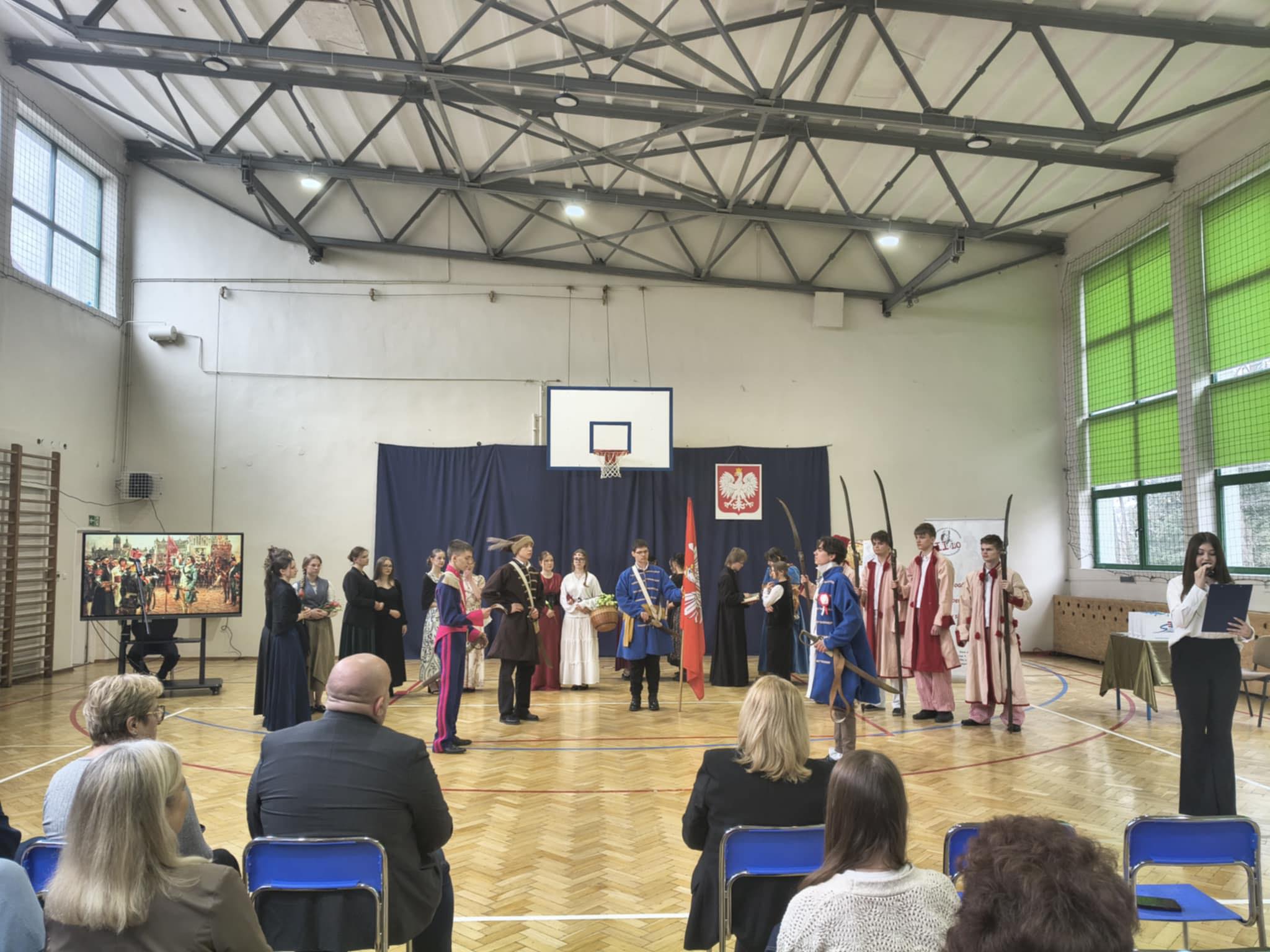 Podziwialiśmy wystawę publikacji o Kościuszce przy dźwiękach muzyki z epoki. Punktem kulminacyjnym był zachwycający „Żywy obraz” – nasi uczniowie po mistrzowsku odtworzyli „Przysięgę Kościuszki” Wojciecha Kossaka.