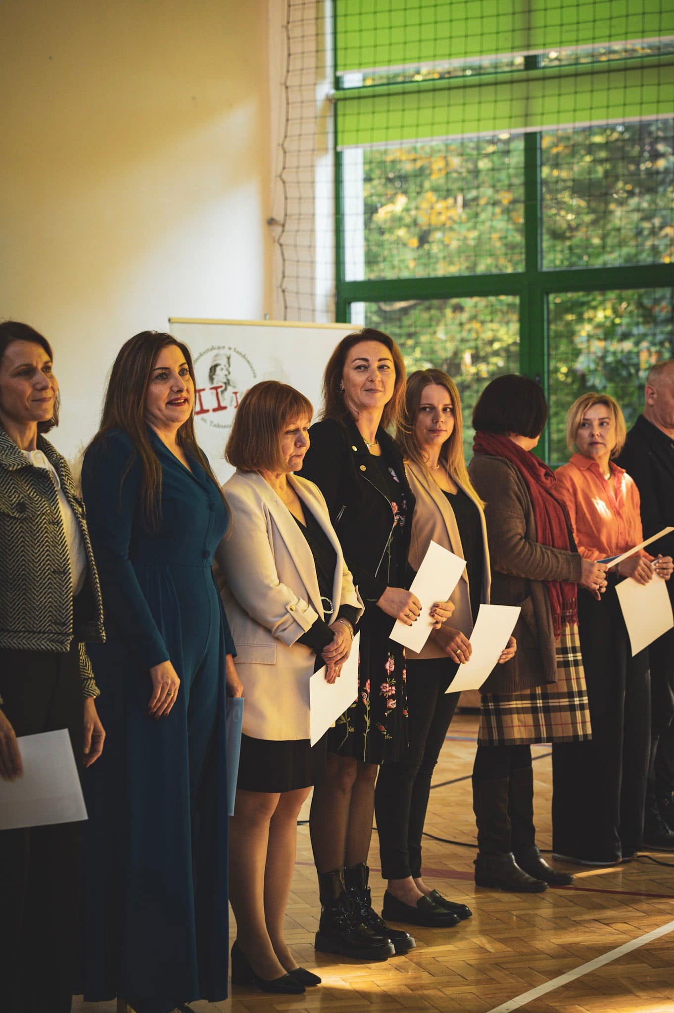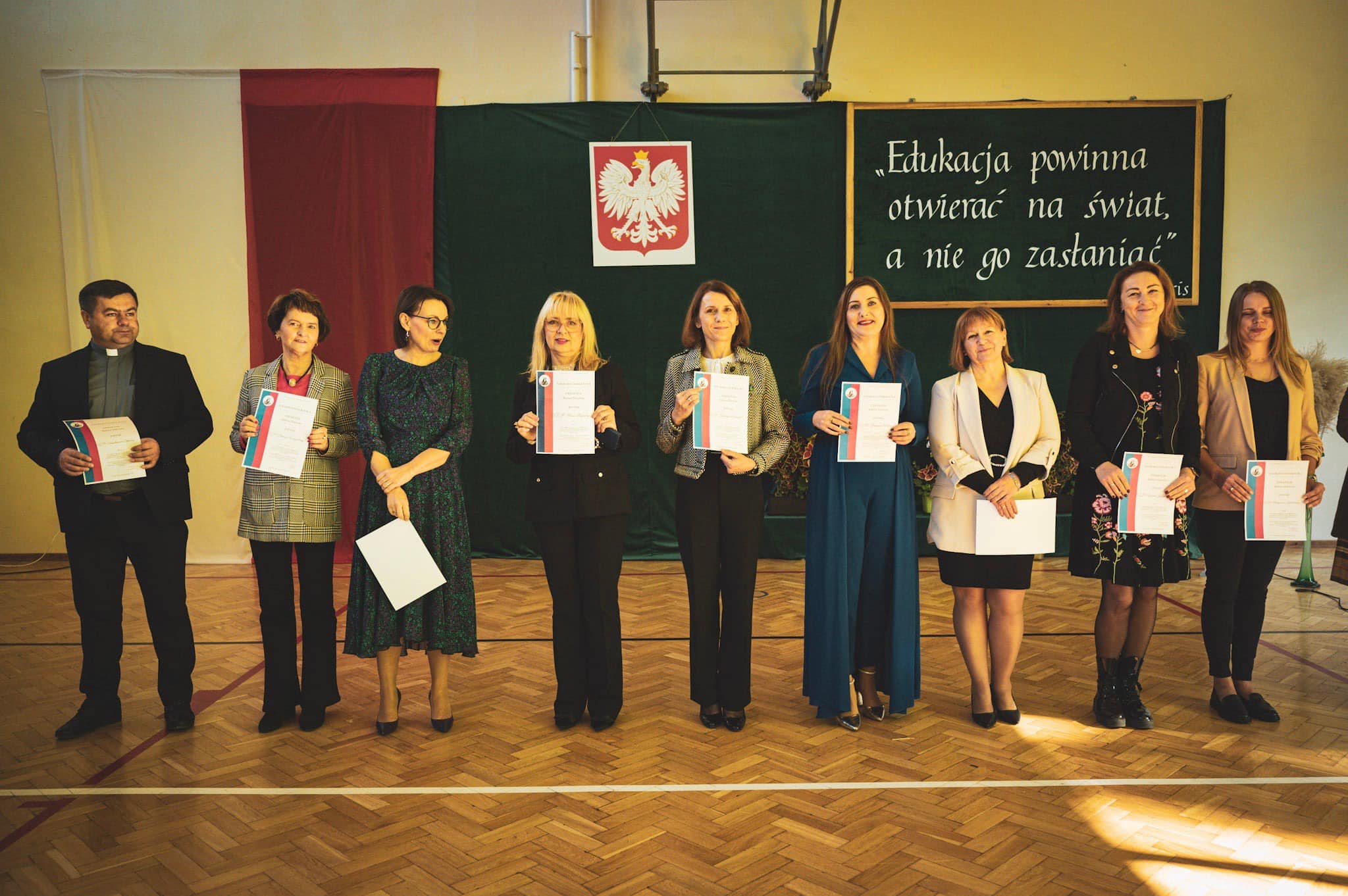 Tegoroczne obchody Dnia Edukacji Narodowej w naszym liceum połączone były ze ślubowaniem uczniów klas pierwszych. Na uroczystość przybyli nauczyciele, pracownicy administracji i obsługi, przedstawiciele organu prowadzącego z Marcin Piwnik - Starosta Sandomierski na czele, zaproszeni goście, rodzice oraz uczniowie. Pani dyrektor Barbara Majewska złożyła życzenia wszystkim pracownikom szkoły, podziękowała za trud włożony w kształcenie i wychowanie młodych pokoleń oraz wręczyła Nagrody Dyrektora wyróżnionym pracownikom szkoły
